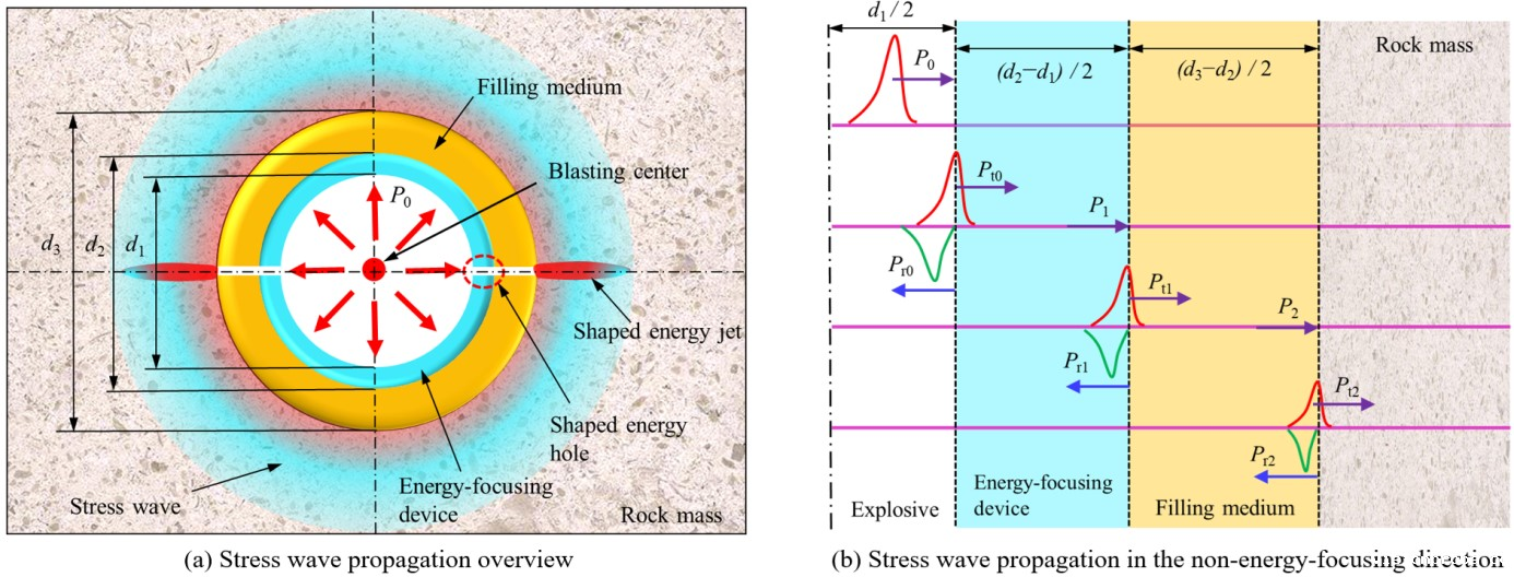 近日,土木工程学院郭鹏飞副教授团队在国际顶级学术期刊《International Journal of Mining Science and Technology》(位列Mining & Mineral Processing学科Q1区(第1/31名))上发表了题为《Energy regulation mechanism and medium-filling effect of energy-focusing blast》的研究论文(DOI: 10.1016/j.ijmst.2025.03.010)。该论文的研究成果揭示了聚能爆破能量调控机制,为提升工程岩体爆破过程中的聚能效应提供了新的策略。